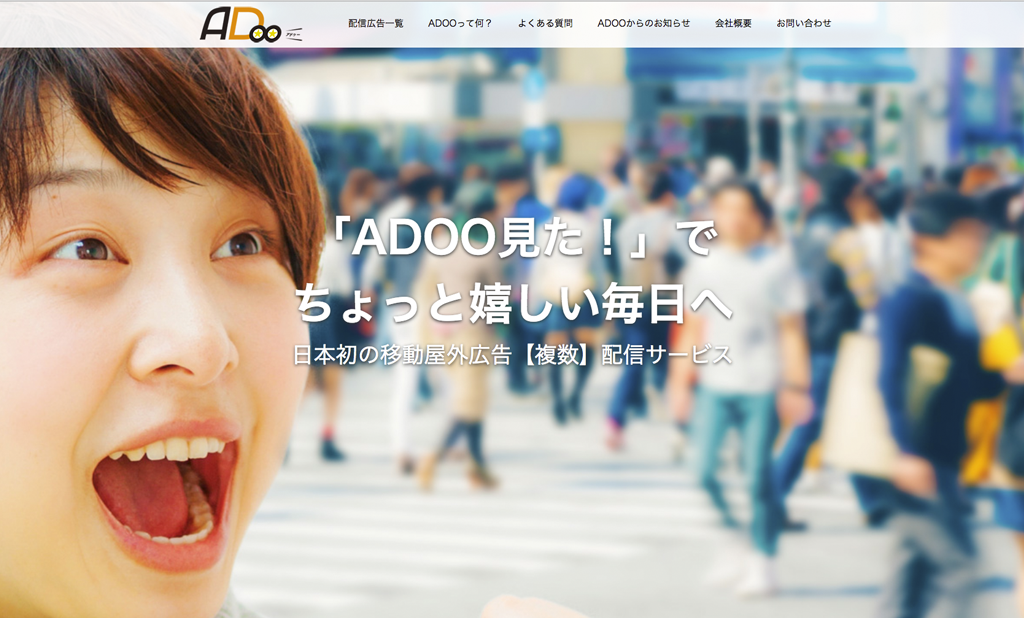 弊社は新しいスタイルの屋外広告サービスとして『アドトラック×インターネット シェア広告 ADOO(アドゥー)』を2016年4月から提供を始めました。