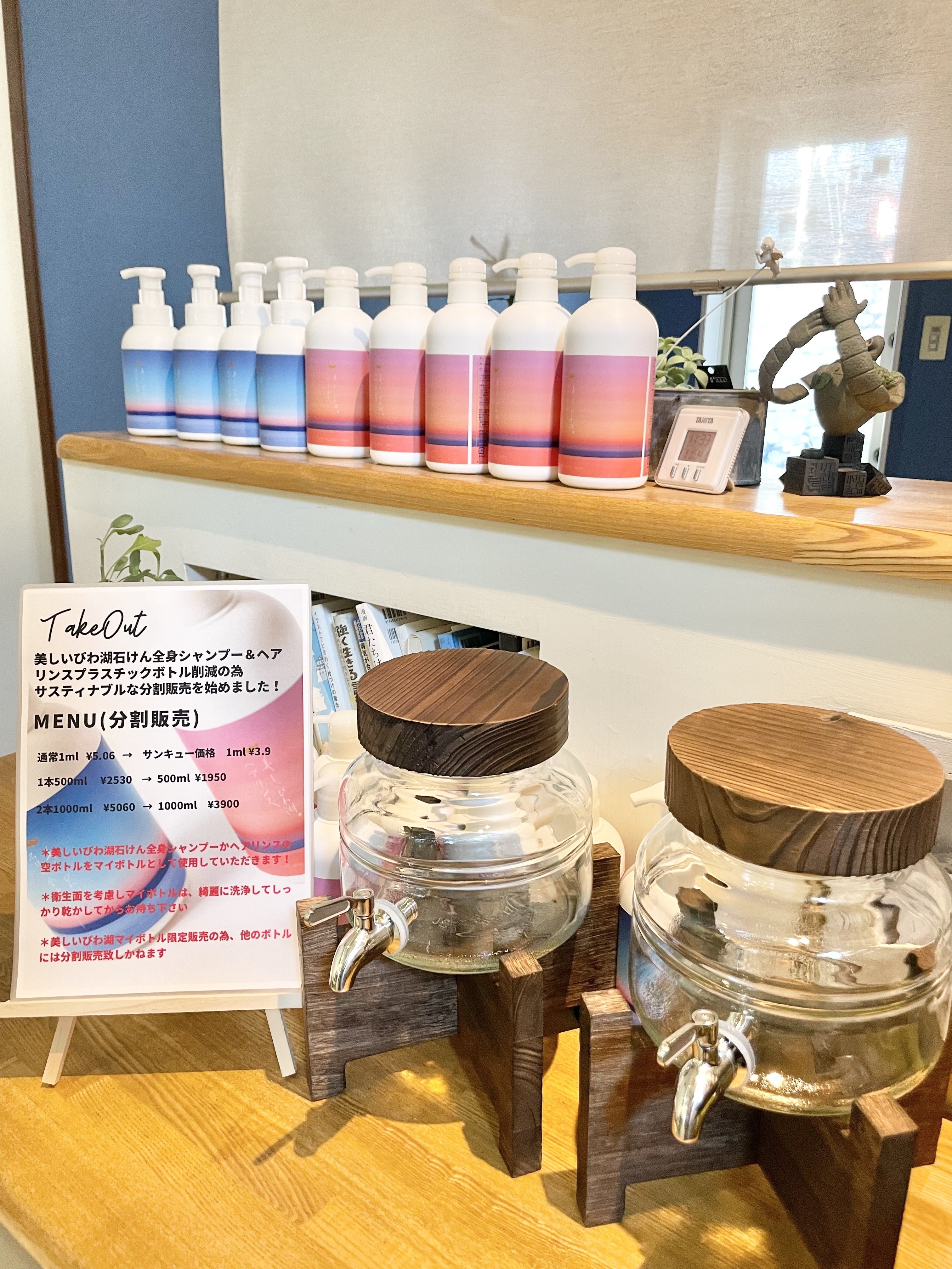 「美しいびわ湖石けん全身シャンプー」プロジェクトオーナーのJINEN201です。 プロジェクトをご支援いただきまして誠にありがとうございます。ご使用開始から1〜2ヶ月たつと思いますが、商品使用感はいかがでしょうか?また質問やご感想などお聞かせいただけたら嬉しいです。さて以前お伝えしておりましたが量り売りシステムですが3月5日より、エイブルビヨウシツの実店舗のみ、シャンプー&リンスの量り売り(分割販売)を開始致します。今お使いの、美しいびわ湖石けんシャンプー及びリンスボトルをマイボトル(他のボトルでの受付はいたしません)として使用していただき、プラスチックゴミ削減にご協力ください。石けんシャンプー、リンスの使用が終わりましたら。衛生面を考慮して必ず中身を洗浄、乾燥させてからマイボトルを販売店のエイブルビヨウシツまでお持ちいただきましたら量り売り(分割販売)させていただきます。量り売り(分割販売)はかなりお得なサンキュー価格通常1ml ¥5.06 → 1ml ¥3.91本500ml ¥2530 → 500ml ¥1950 2本1000ml¥5060 → 1000ml¥3900シャンプー&リンスご使用者様と地球環境にも優しいサスティナブルな量り売り(分割販売)システム活用をぜひご検討くださいませ♪