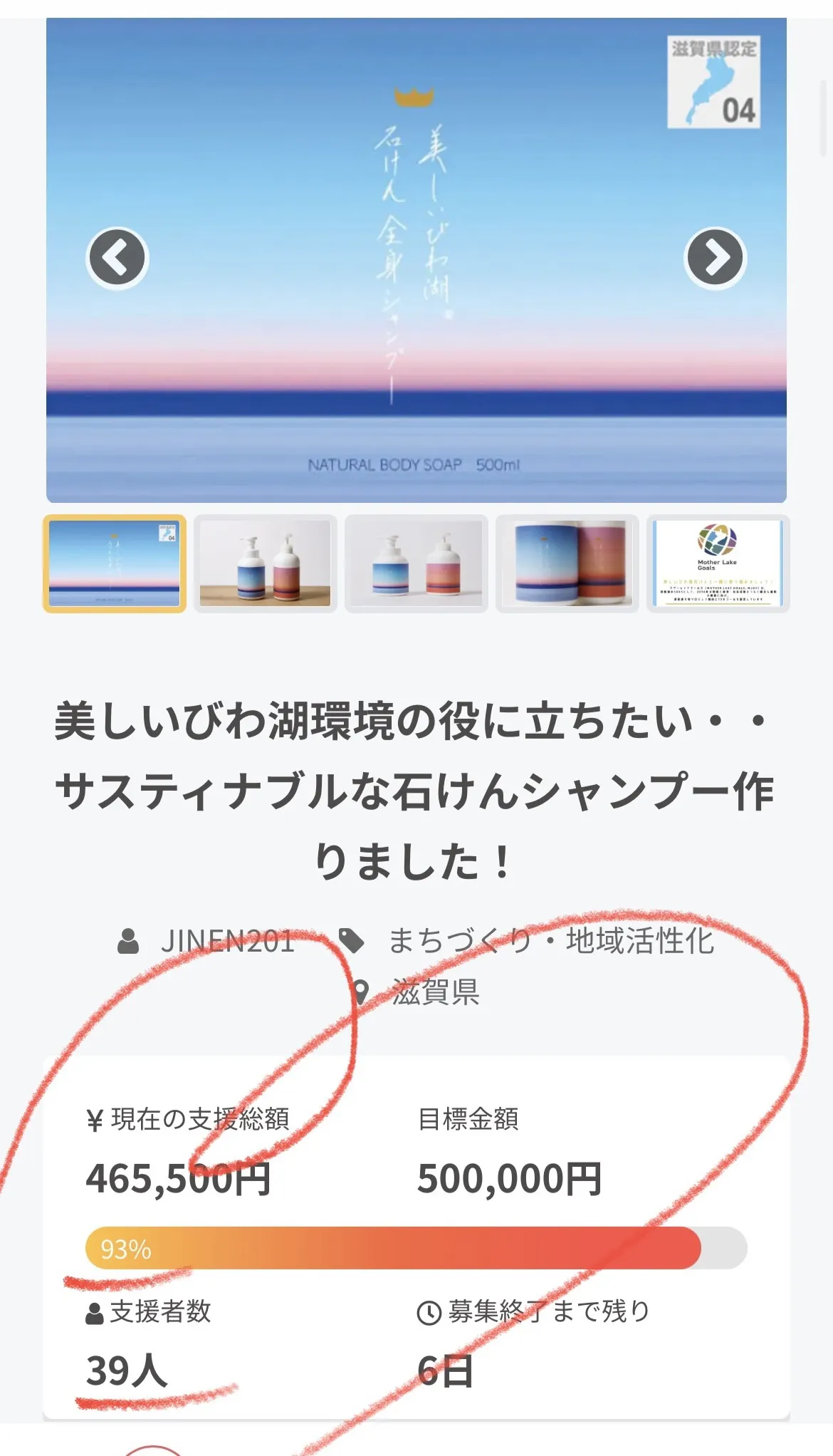 「美しいびわ湖石けん全身シャンプー」プロジェクトオーナーのJINEN201です。