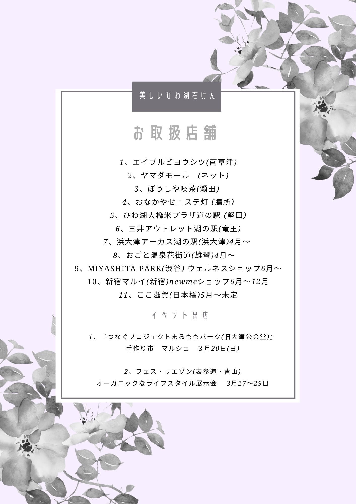 3月にイベント出店が20日(大津)と27日〜29日(東京)でございますので、お知らせします。