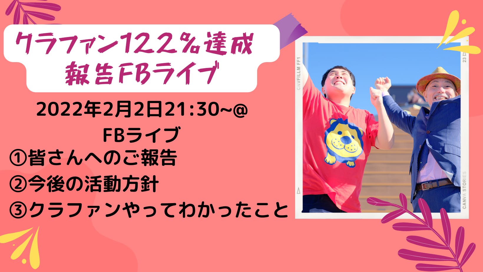 本日21時半のFBライブ配信では、そのご報告と