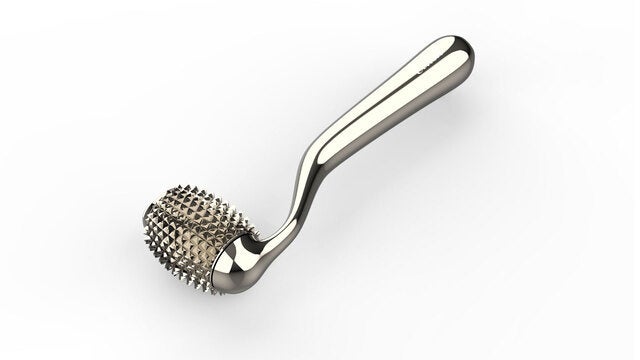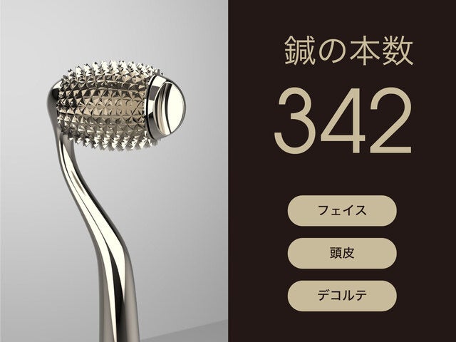 ローラー表面はチタンコーティングを施していて、肌にとても優しい仕様です。ローラー部は、温度を保持する特性があり、成型精度の高い”亜鉛合金”を使用。”細かい突起を持った、たる型のローラー”が実現しました。
