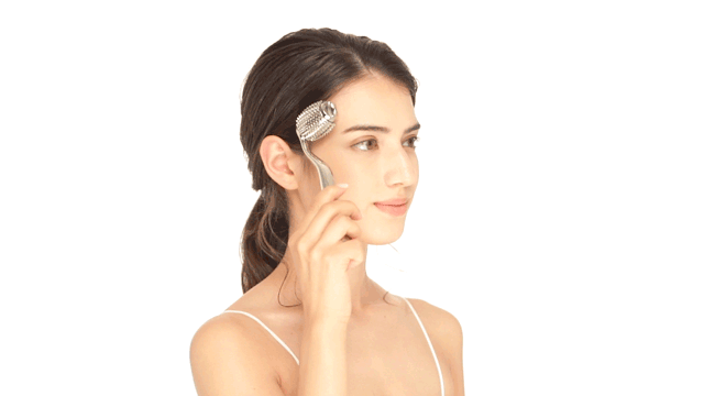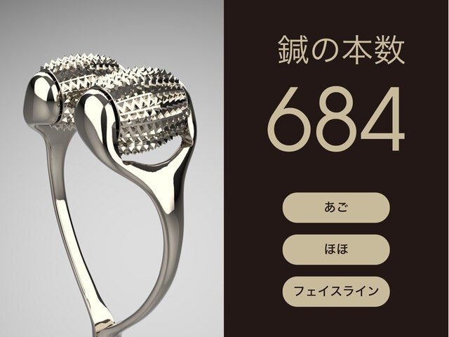 ほほ~あごにかけてのフェイスラインや、口まわり、顎下、エラ部分が気になる方にオススメ。684本の刺さない鍼が表情筋の筋膜をほぐしながら、左右均等な力でしっかりと挟み込み、優しく持ち上げながら流します。