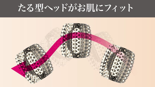 人の肌は平面ではありません。Cellshエステローラーシリーズのヘッドに採用した「たる型」は、肌の曲線にぴったりフィット!また肌の曲線に沿って、ハンドルを切るようにヘッドを滑らかに動かせるので、いろいろな部位を細かく刺激出来ます。
