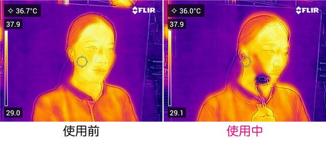 ※冷蔵庫で冷やしたCellshを使った時の温度変化(サーモカメラFLIR C3-Xで撮影)