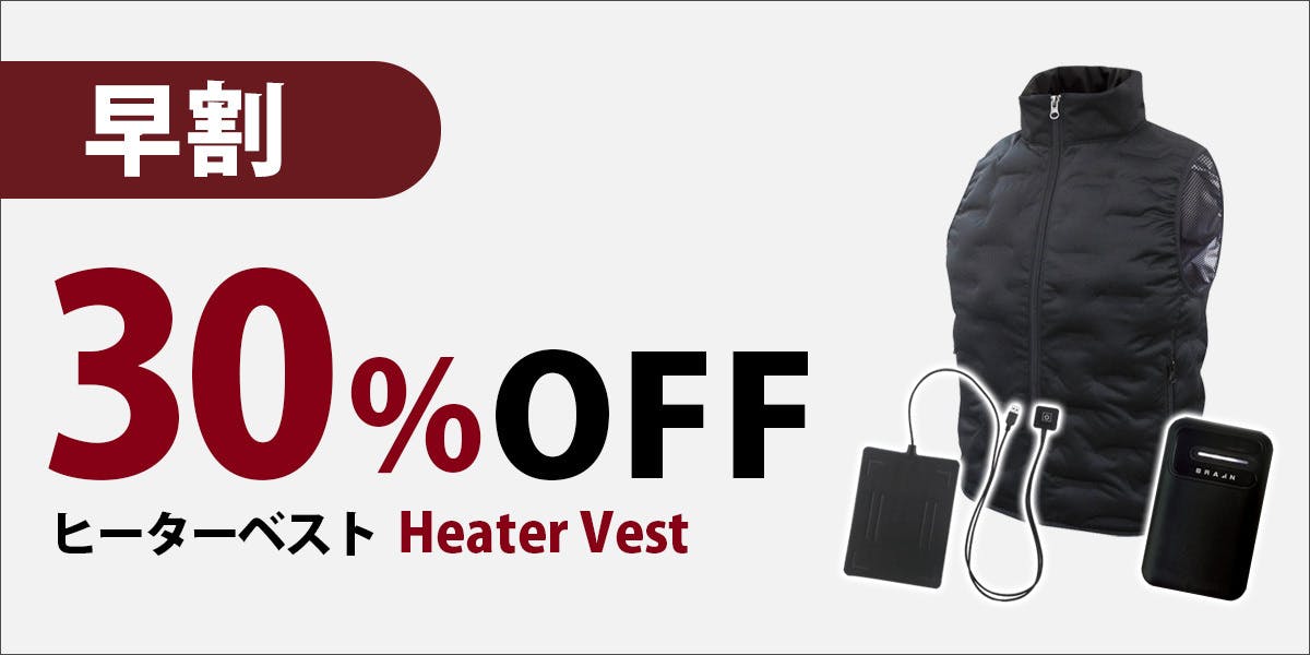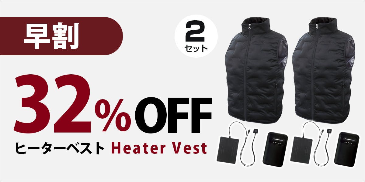 | 付属品:ウェア、スイッチ付きヒーターパッド、10000mAhモバイルバッテリー(PSE取得済み、重さ約180g) |