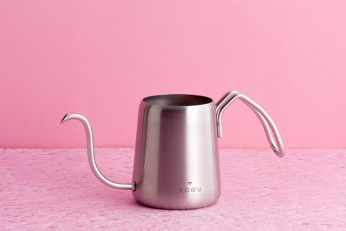 ねらったところにドリップできるポット!どんなに傾けても真下に注げる!こだわりの注ぎ口角度。極細の注ぎ口は一滴湯量にも調整可能。ポットは手を入れて洗える幅広開口、フチは外巻きにすることで、使用後の水切れも良くなりました。フタのない仕様で、温度計(別売)を引っ掛けて使用もお勧め。
