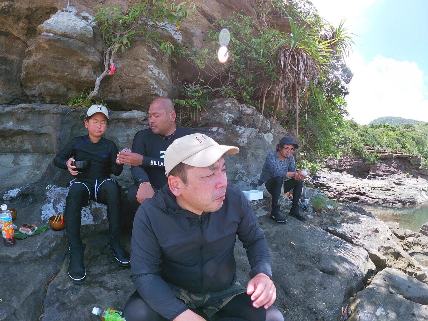 島では、そばセットとお湯だけで、食べれるので、みんなで、海で遊んで