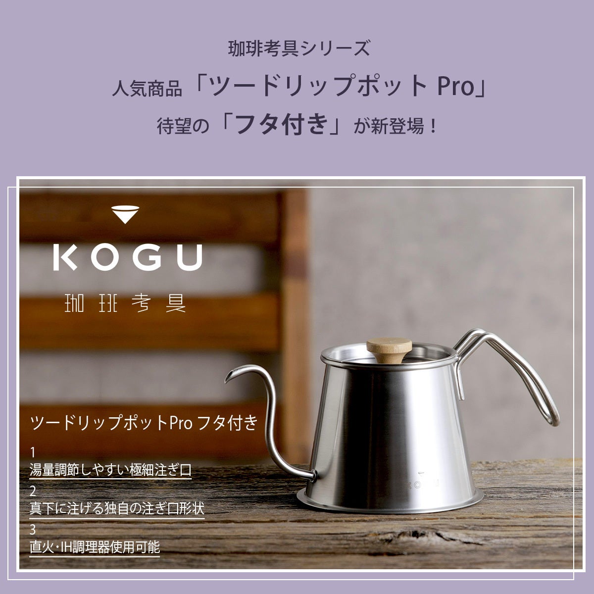 珈琲考具ツードリップポットPro(フタ無し)は発売から約2年間で1万5千個が売れています。今もフタのないポットとして販売していますが、「フタが欲しい!」と声をいただき、その声に応えて開発しました。