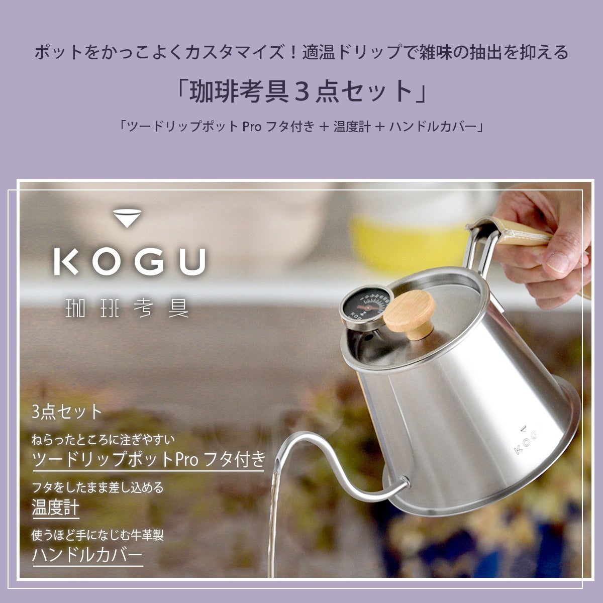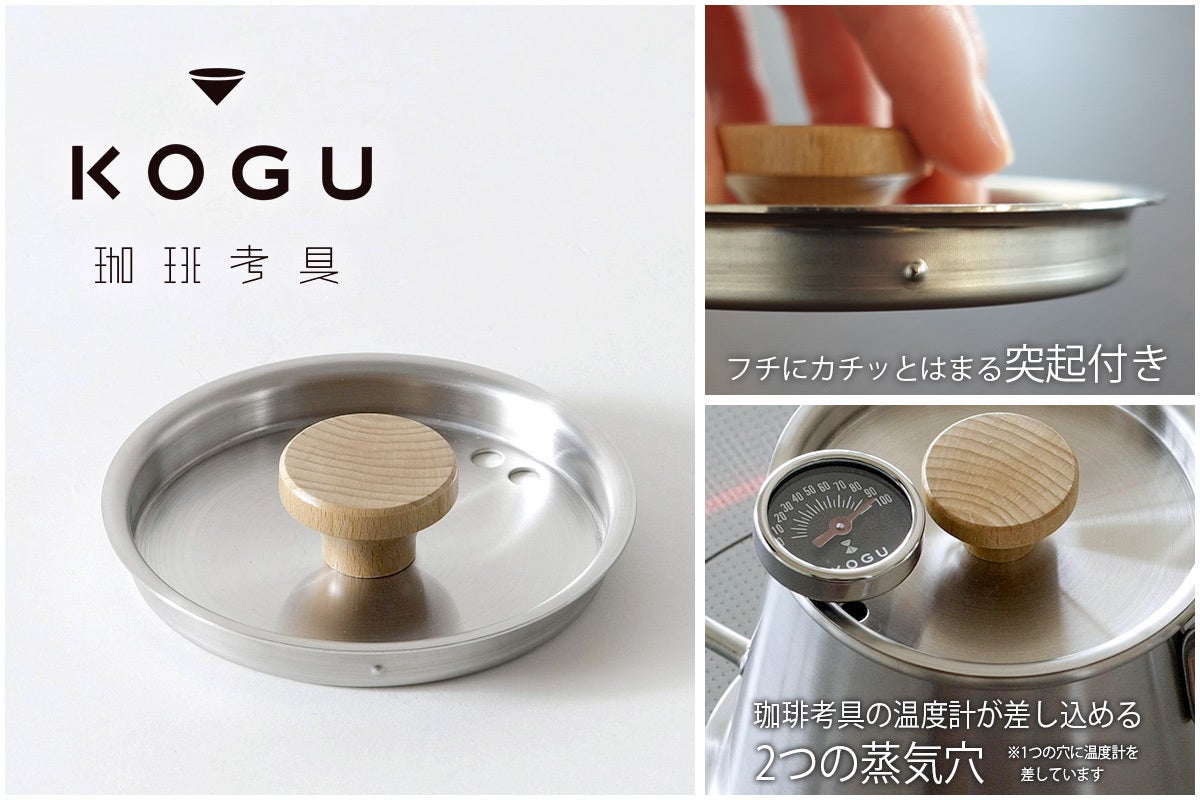 ・フタには蒸気穴が2つ、1つの穴に珈琲考具の温度計を差して使用できます。