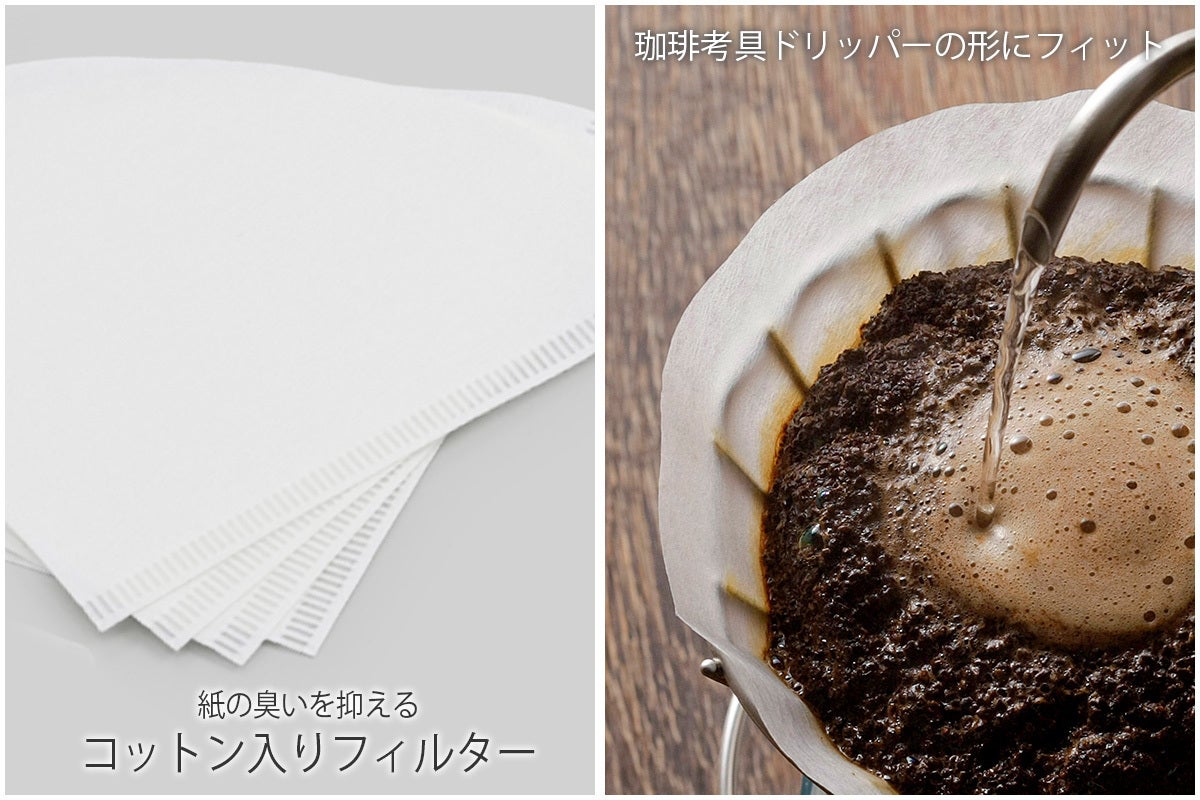 ・紙の臭いを抑えたコットン入りフィルター。
