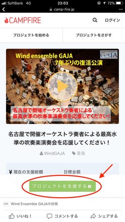 こんにちは! 皆様から支援の仕方がよくわからないとのお話がありましたので今日は 写真を使って支援方法をお伝えしたいと思います。 支援はちょっと手間がかかりますが、 スマホで簡単にできるのでぜひやってみたください! 今回は一番皆さんの身近な方法であろう スマホでの支援の仕方をご説明させていただこうと思います。 ではスタート 1.まずこちらGAJAのクラウドファンディングのページを開きます。 ⒉矢印の【プロジェクトを支援する】を押します。 ⒊次に【このリターンを選択する】を押します。 するとログインページに移り まだ会員登録をされていない方は登録をしていただなくてはなりません。ほとんどの方はこちらで会員登録をすることとなりますが、このあたりから面倒な作業になりまして。。皆様にはご迷惑をおかけしますが、 ぜひこちらをのりきってご支援をおねがいいたします!! キャンプファイヤーの会員登録は ・メールアドレス ・フェイスブック ・ツイッター の3種類の登録またはログイン方法があります。 こちらではフェイスブックによる会員登録で進めていきたいと思います。 ⒋【Facebookでログイン】を押します。 5.【○○としてログイン】を押します。 Facebookでのログインでも登録時は ・メールアドレスの確認 ・ユーザー名の確認 ・パスワードの登録 が必要になります。 ⒍必要事項を記入しましたら【確認メール送信】を押します。 7.メールが届きますのでメールブラウザに移動してください。 ⒏届いたメールのURLを押します。 これで登録が完了しました。 【プロフィールを入力する】はスルーしていただいて大丈夫です。 続いて支援に移ります。 ⒐【プロジェクトを探す】から検索ワード等を使ってGAJAのページヘ移動します。 検索ワードは「gaja、GAJA等」で大丈夫です。 ジャンルで探す場合は「音楽」です。 10.みつかったらGAJAプロジェクトへ移動します。 11.【プロジェクトを支援する】を押していただき 12.様々なリターンの中からお好みのリターンを選んでいだだきチェック 1⒊【お支払画面ヘ】を押します。 金額の設定がありますが、そこはスルーしていただき 14.支払方法を選んでいだだき 15.下にいって【お支払い画面へ】を押します。 16.お支払い情報を登録していただきましたら完了となります。 大変長い作業で煩わしいとは思いますが なとかご支援よろしくお願いいたします。 なお、複数ご支援いただく場合は12.からの行程を繰り返していただくことになります。 以上よろしくお願いいたします!!