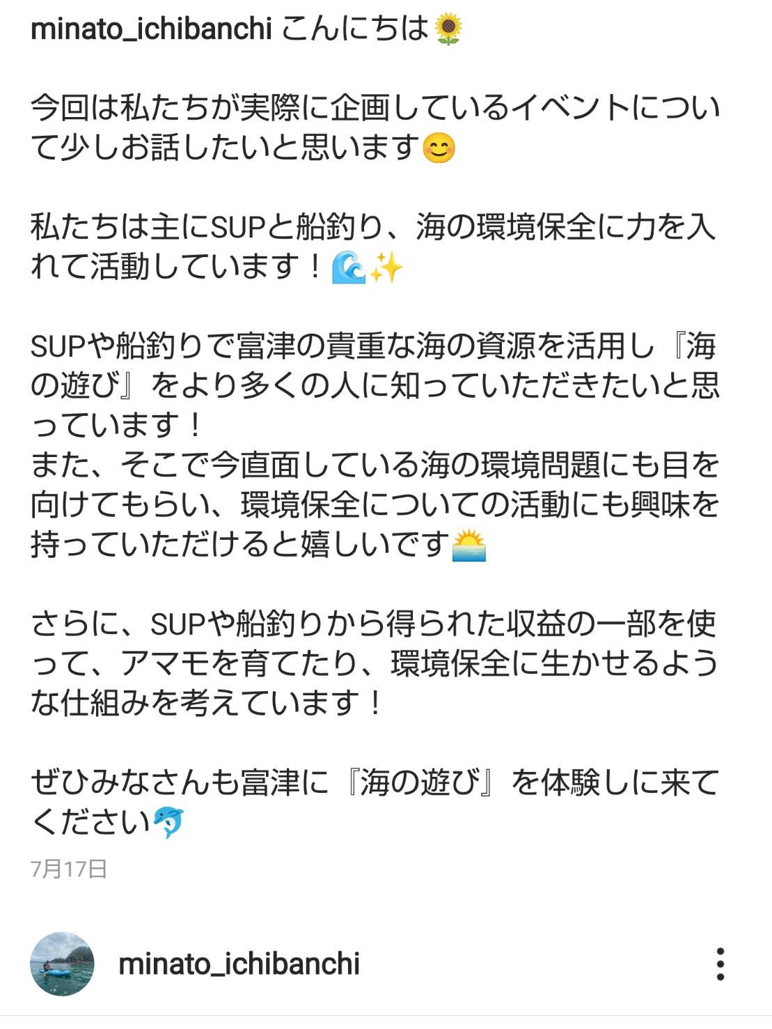 まず始めたのが” インスタグラム ”を活用した宣伝活動です。現在港壱番地ではSUPの貸し出しや船釣りなどを行っています。それをインスタグラムの投稿を通して大々的に宣伝しました。