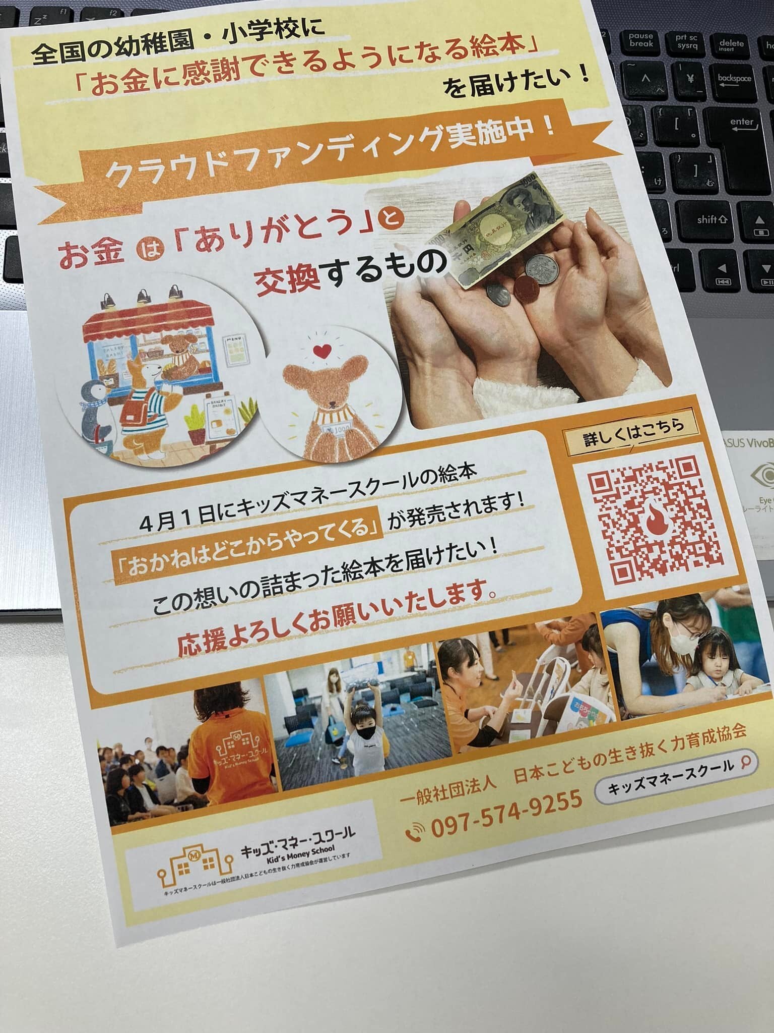 2022/03/03 19:44今日、事務局にこんな電話がありました。保護者「子どもと一緒に支援したいのですが コンビニ支払いでもできますか?」コンビニでも支援できることをお伝えしました。そのときに、お電話で、経緯をお聞きしました。保護者「まだ小学生の息子ですが、 クラウドファンディングで、 支援することを親子で一緒に学ぼうと思って。 『おかねの絵本』もステキで、 活動を応援したいと思ってたんです。 それを親の私だけではなくて、 子どもと一緒に応援することをしたくて。 少しでもわかってくれるといいな、 って思って支援しようと思いました」・事務局のスタッフたちね、感動で嬉し泣きしました。。。・「全国の幼稚園・小学校に絵本を寄贈する」クラファンがスタートして、3日が経ちました。本当にたくさんの皆さんが、この企画に賛同、そして支援をいただいています。本当にありがとうございます!・私たちの目的は、目標金額を達成することではなく、一冊でも多くの絵本を子どもたちに届けること。・まだまだ頑張りますので、ご支援よろしくお願いします!この本を読んだ多くの親子が、「お金ってありがとうと交換するものなんだね!」って親子でハナシができる。それが私たち大人が、これからの日本を背負っていく、子どもたちへの貢献だと思っています。 もっと見る