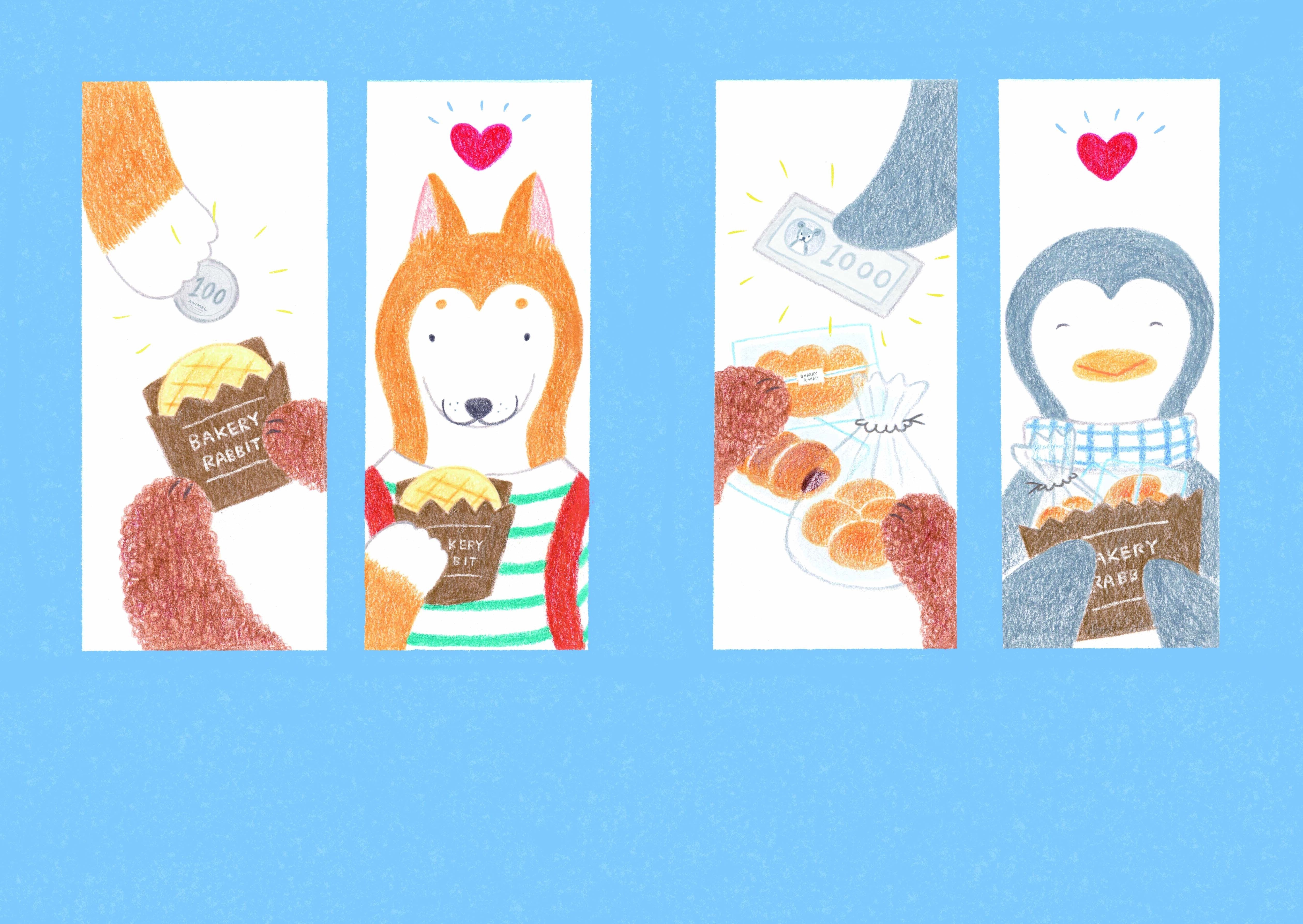 歩いている時に出会ったケガをしたパン屋さんの代わりにお店のお手伝いをすることに。
