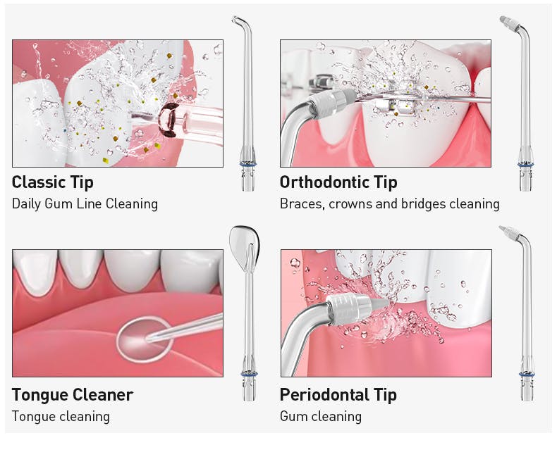 2.さまざまなオーラルケアのニーズに対応する360 ° 回転可能な4つのノズル。