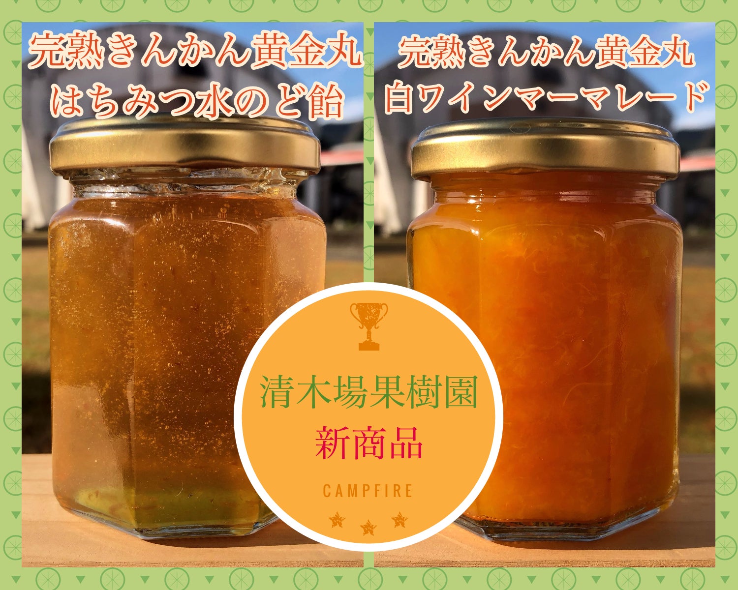 こんにちは!クラウドファンディングをスタートして6日目になりました!現在、目標達成率は79%になりました。支援していただいた皆さま本当にありがとうございます。これからも清木場果樹園を宜しくお願いいたします。ここで開発秘話についてお話ししたいと思います。★完熟きんかん黄金丸はちみつ水のど飴この商品を作るきっかけは、風邪の予防やのどの痛みに効果があると言われる金柑を、そのまま食べられるものはないかと思い考えたことです。そこでのど飴を思いつきました。しかし、固形のものはコンビニでも買えるためなかなか広まらないので、水あめを使用したものはどうかと思い試行錯誤し完成したのが【完熟きんかん黄金丸はちみつ水のど飴】です。 金柑を細かくして、食べたときに滑らかな触感になるよう仕上げました。そのまま食べてもよし!お湯に溶かして飲むのもよし!料理に使用してもよし!いろいろなものに使えます。★完熟きんかん黄金丸白ワインマーマレードこの商品は、 「大人向けのジャム」のコンセプトで開発しました。今まで販売していたマーマレードに白ワインを入れることにより風味豊かになり、さらに美味しく仕上がりました。