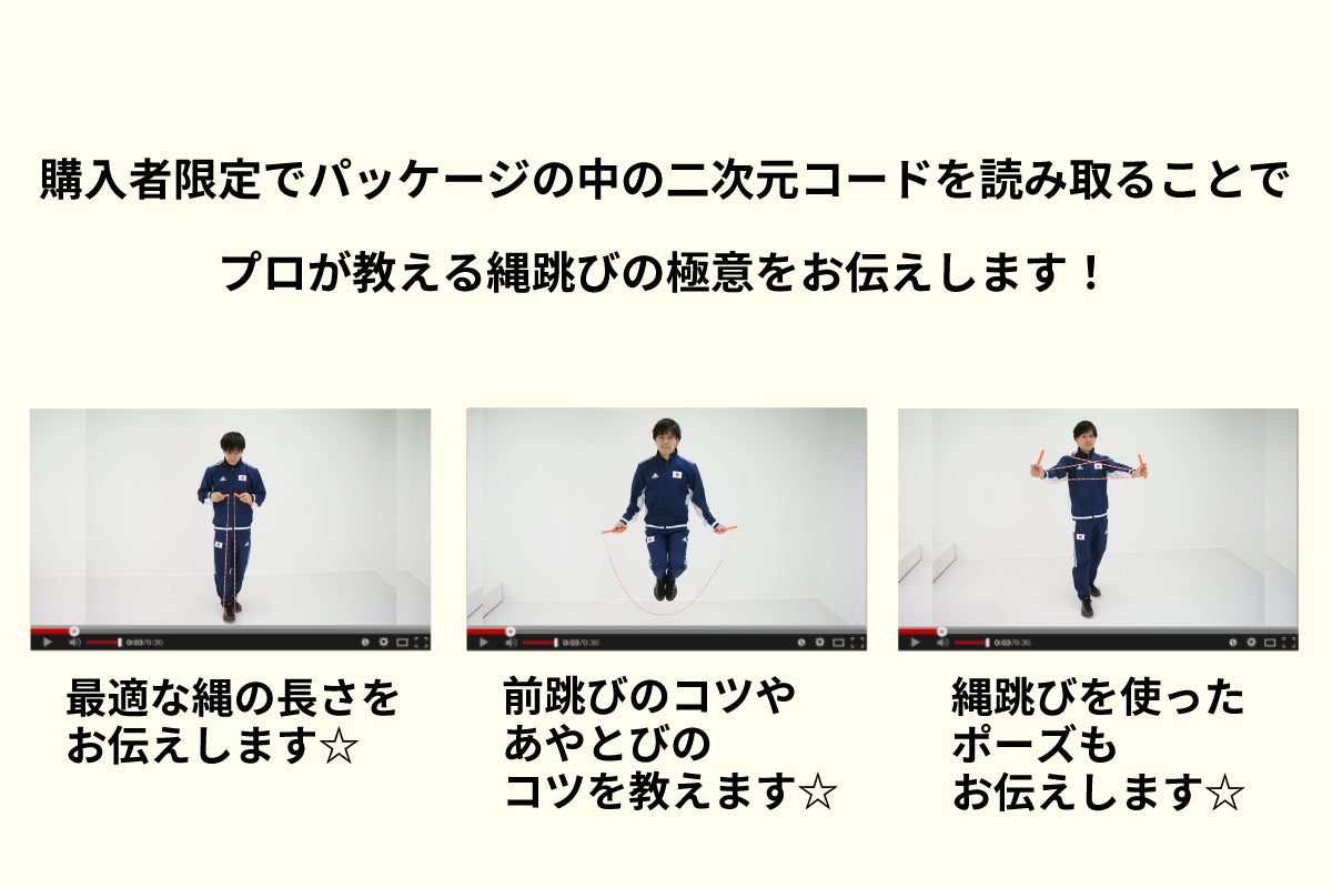 また、購入者限定にてなわとびのプロが教える、なわの長さや跳び方のコツの二次元コードをパッケージ内に組み込みます。