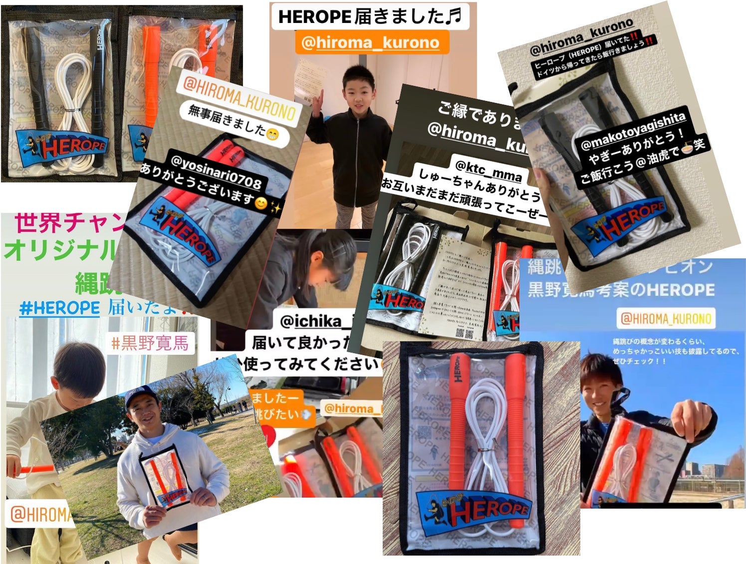 2022/01/15 16:35先日HEROPEの発送が終了しました。個人のInstagramにて皆さんメンションしてくださりありがとうございました!たくさんの方に使っていただけて、本当に制作してよかったと思っています^^さて、応援購入された皆様の中でまだ届いていない方や到着した商品で何か不具合があった方などいらっしゃいましたらクラウドファンディングのサイト内メッセージにてご連絡いただけると助かります。初めてのクラウドファンディングなのでまだ不十分なところがあると思いますが、何か問題があれば都度対応させていただきますので、ご連絡いただければと思います。写真はInstagramでメンションしてくださった方たちを集めてみました^^HEROPEが届いた方、実際にHEROPEを使って跳んでみたという方、是非今後もSNSであげていただき、黒野をタグ付けしていただけたら嬉しいです!現在、ドイツのサーカスから帰国してホテルで隔離しております。寒い日が続きますがお体にお気をつけてお過ごしください。HEROPEプロジェクトオーナー 黒野寛馬 もっと見る【HEROPE発送しました!】