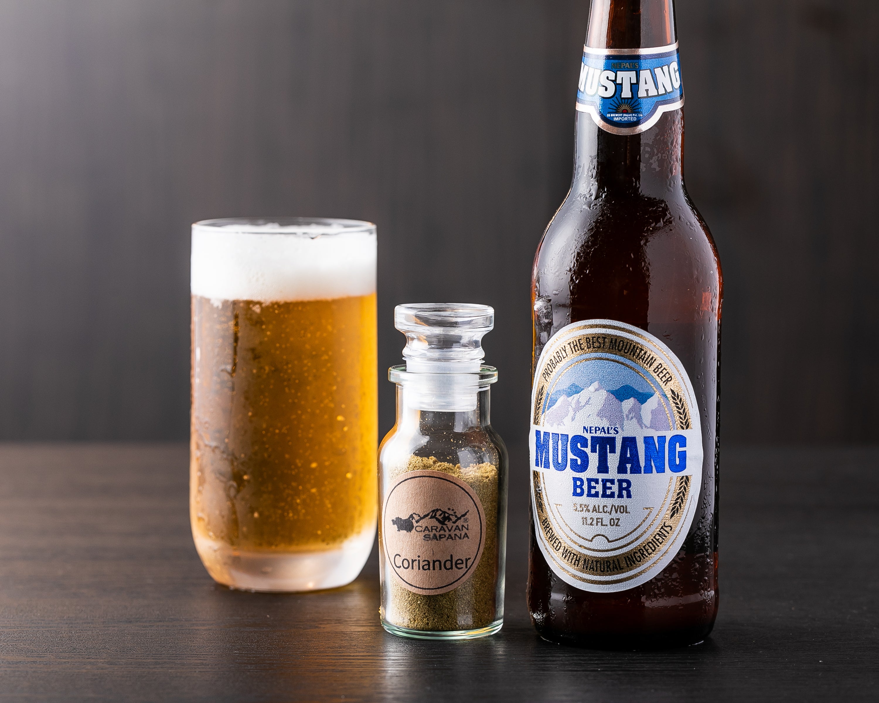 また、こちらとは別に、サパナオリジナルの『スパイスボトル』もご提供させて頂きます。見た目もカワイイボトル入りのスパイスで、スパイスの種類は『コリアンダーパウダー』です。グラスに注いだムスタンビールに、お好みの量を振りかけていただくと『スパイスビール』としてお楽しみ頂けます。違ったテイストになり、更に『アジアン』な気分にさせてくれ、とってもオススメの飲み方です♪