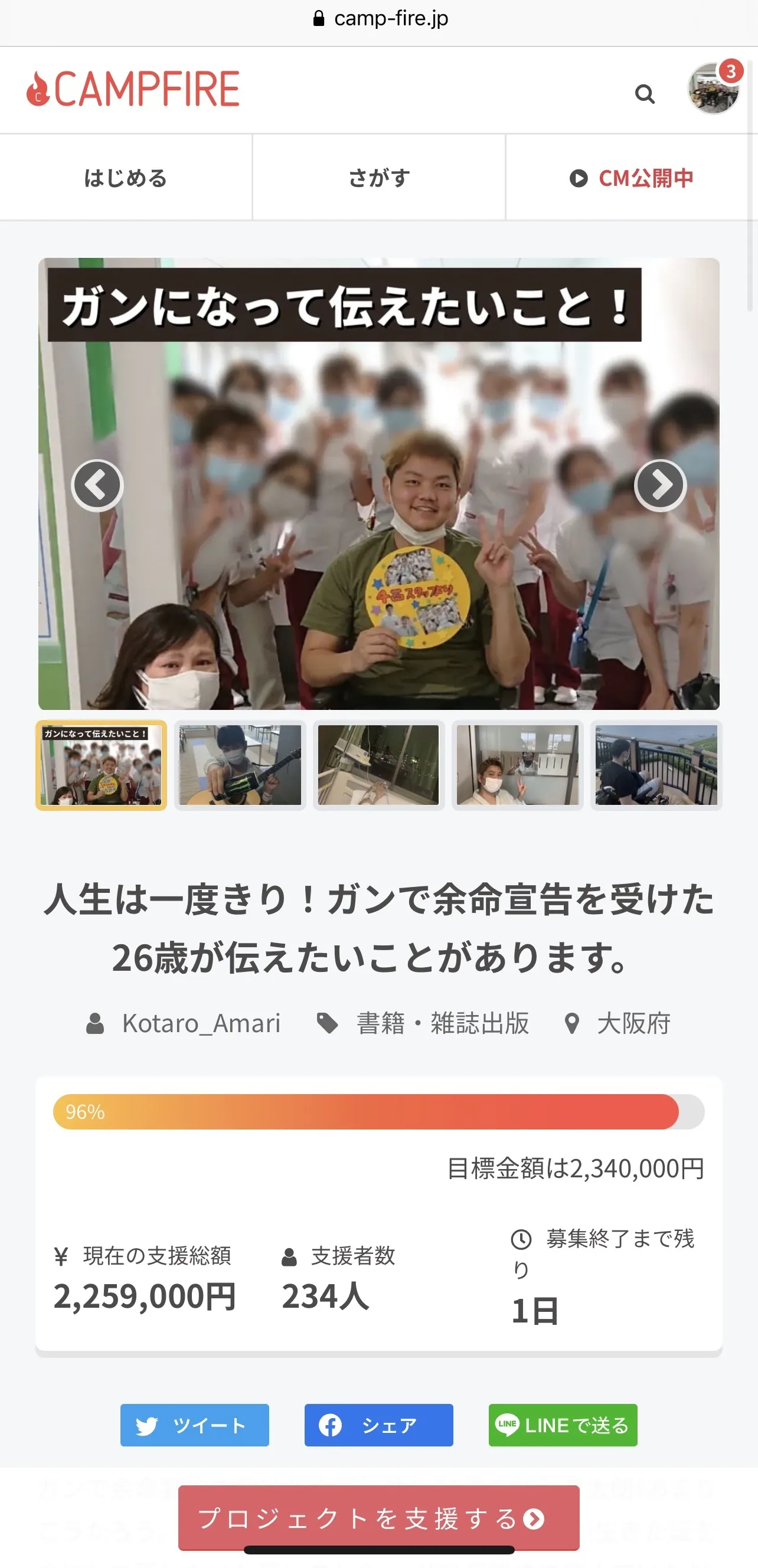 僕の夢のために皆様から支援いただき大変感謝しております。