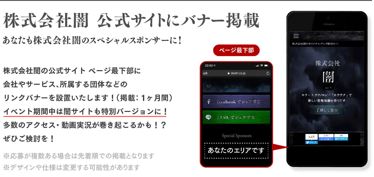 株式会社闇の公式サイトのように数千万回にも及ぶ、画面越しの恐怖を届けてきたという自負があります。