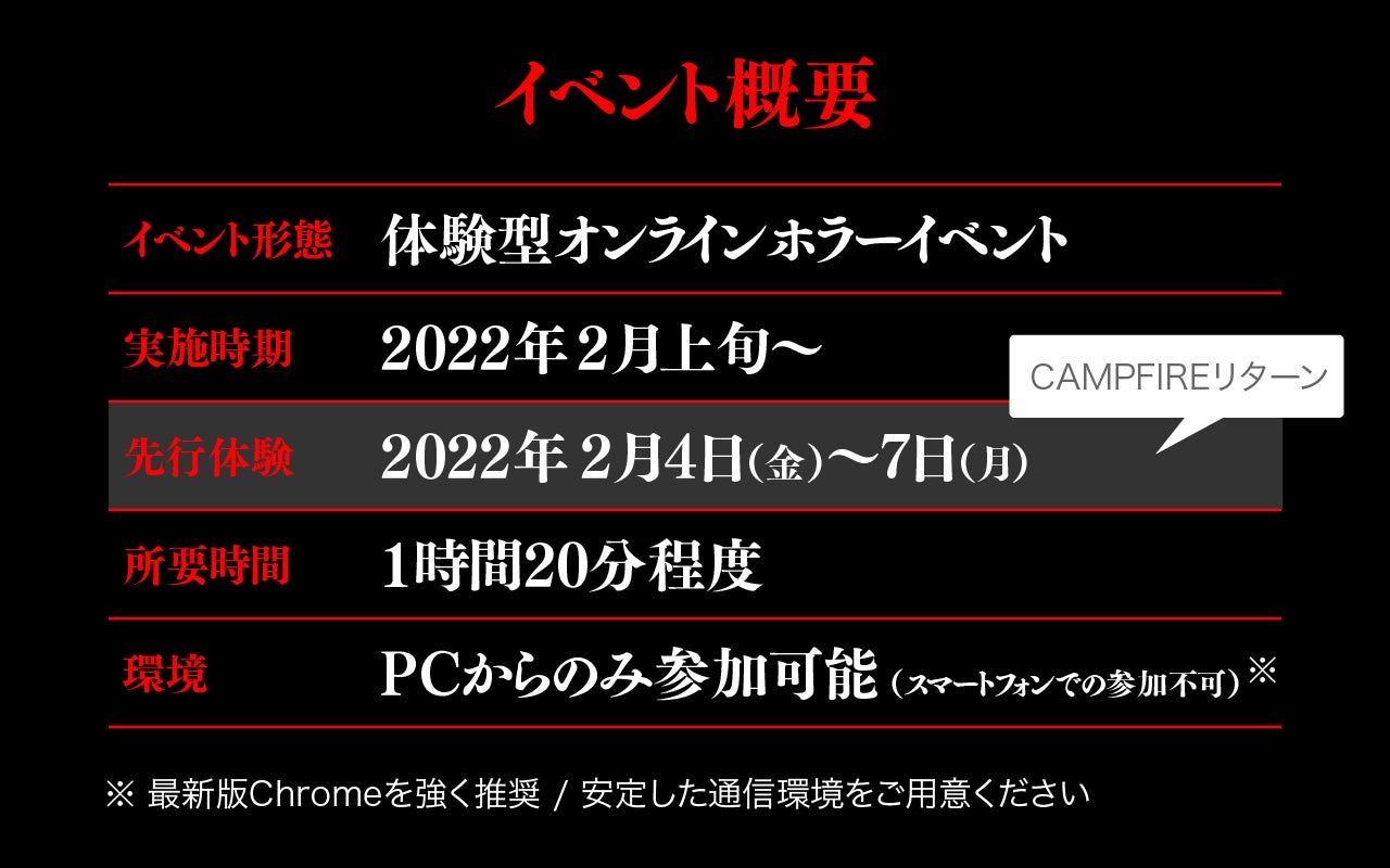 CAMPFIRE限定 イベント先行体験会の日時、必要環境について