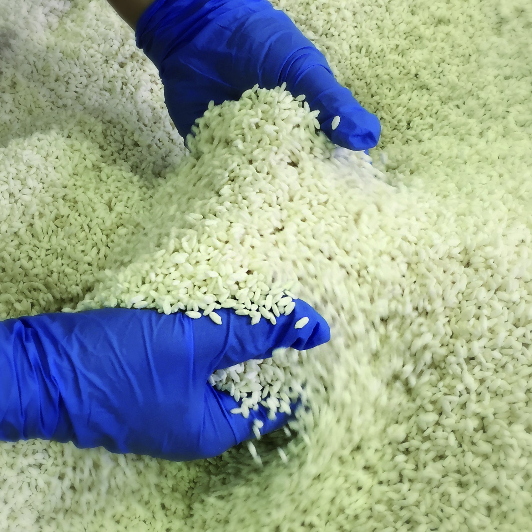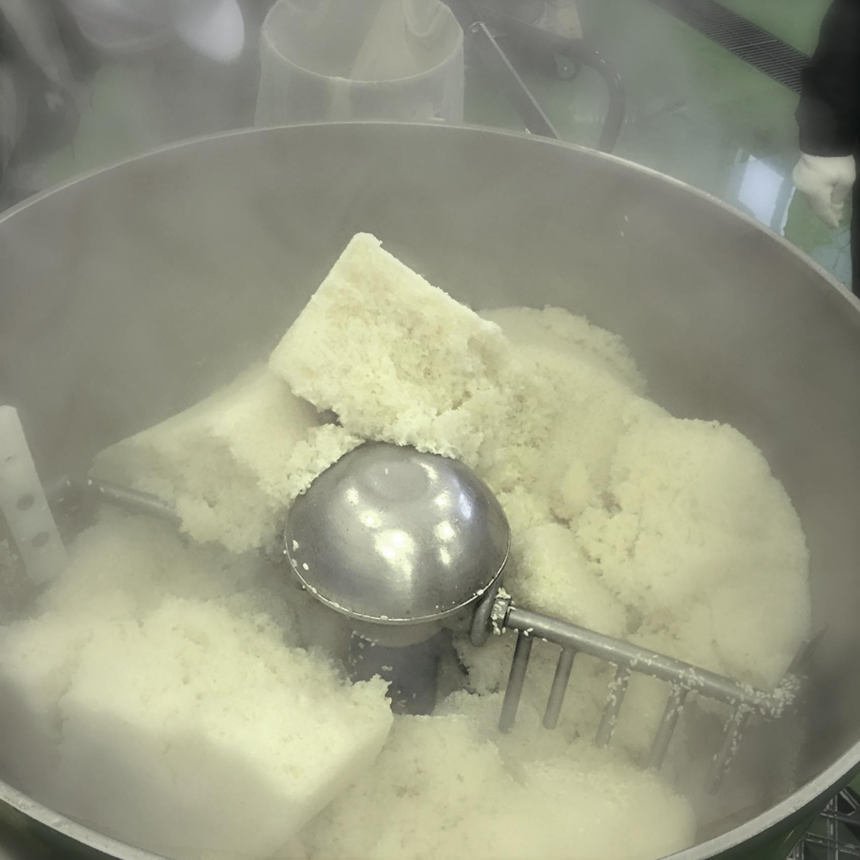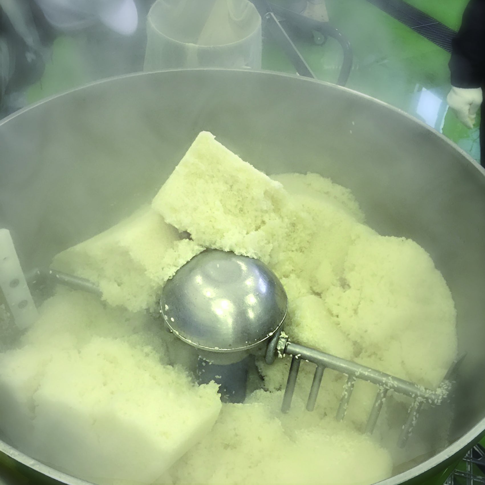 創業以来続く糀づくりは、全国でも高い評価を得るほどの品質であり、糀菌が米の芯にまでくい込むめずらしいものです。(突き破精製法)