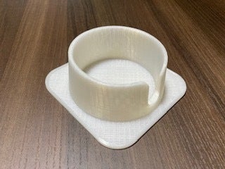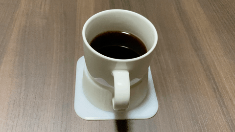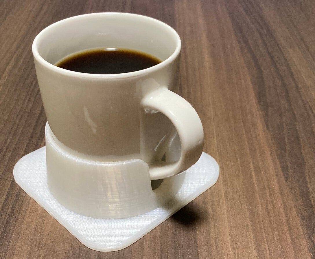 机の上でPCので作業中に、そばに置いたコーヒーカップを倒してしまってPCを壊してしまったのがきっかけです。机にくぼみを作ればいいと思いましたが、それも大変なので倒れにくいコースターを考えました。その後デザインに興味をもち知的財産権を取得しました。