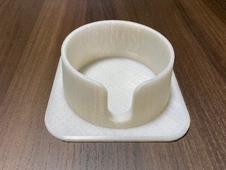 コースターと円錐状のホルダーを一体化、コーヒーカップの転倒防止対策に役立ちます。
