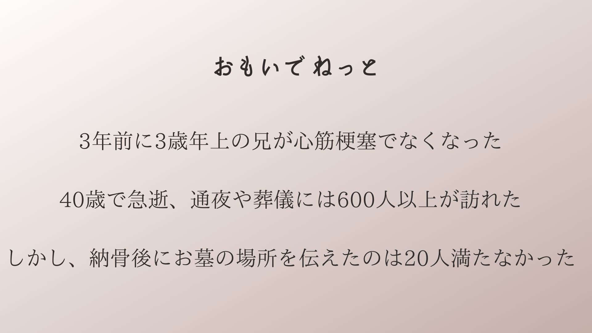 そんな中、お礼をする方法はないかと今回のOMOIDE NETを立ち上げました。