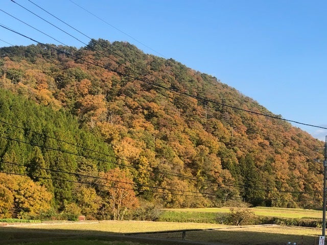 金言時の大イチョウに負けじと、近隣の山も盛大に色づいています。
