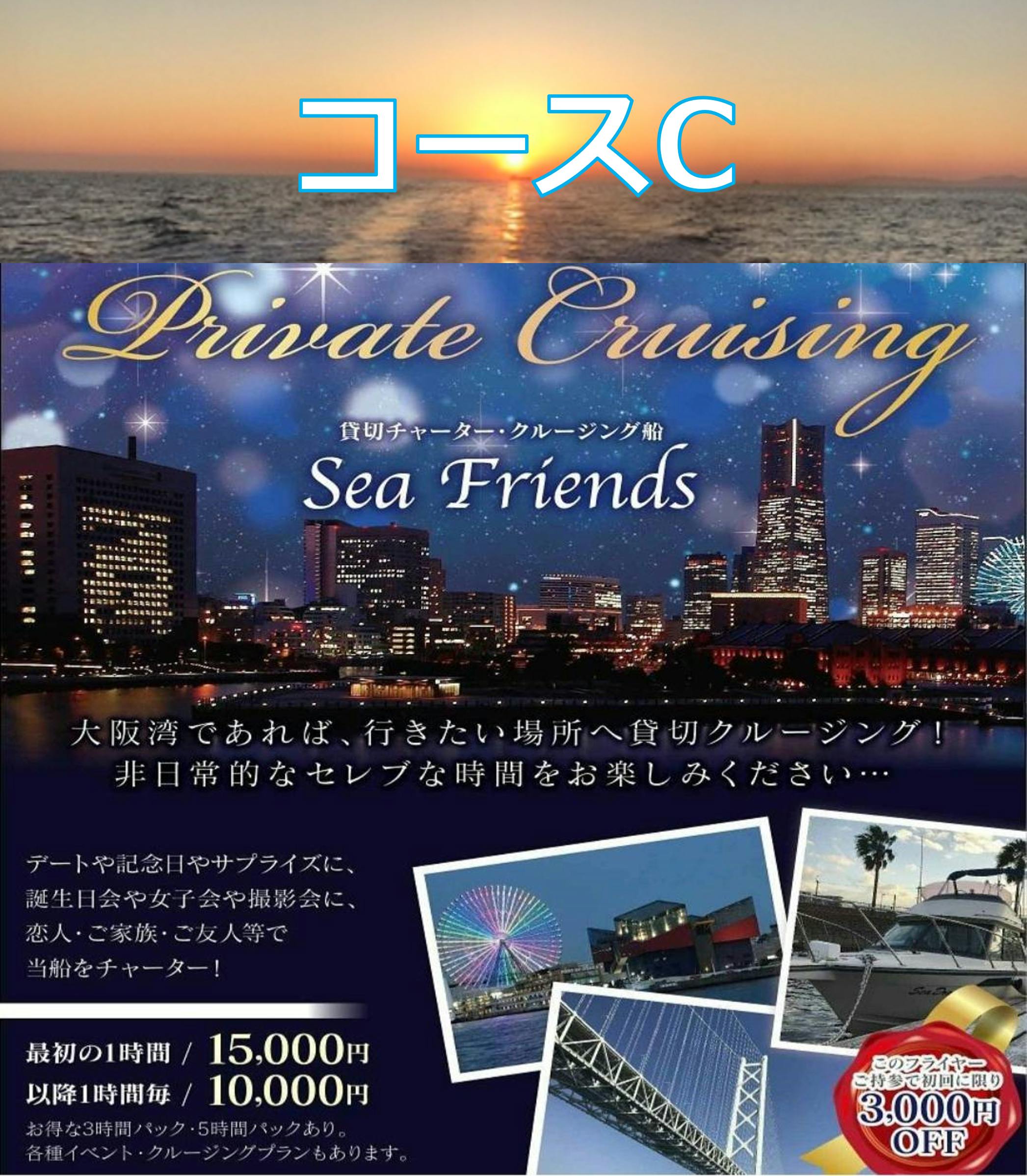 大阪府堺市にて、貸し切りクルージング船の運航をしております、Sea Friends代表の平山とスタッフの牧戸と申します。