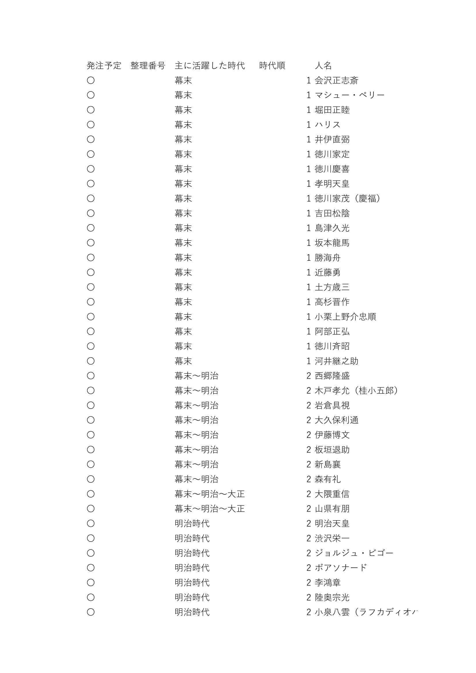 今回、カードとして製作する「幕末~明治」編の60名が決まりました。