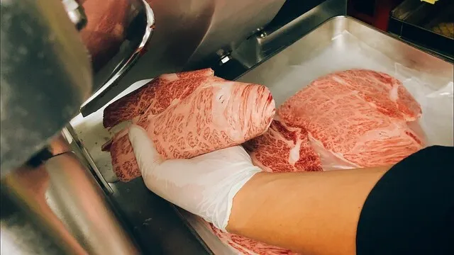 きめ細かい霜降りと柔らかな肉質、甘みのある香り。