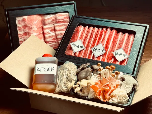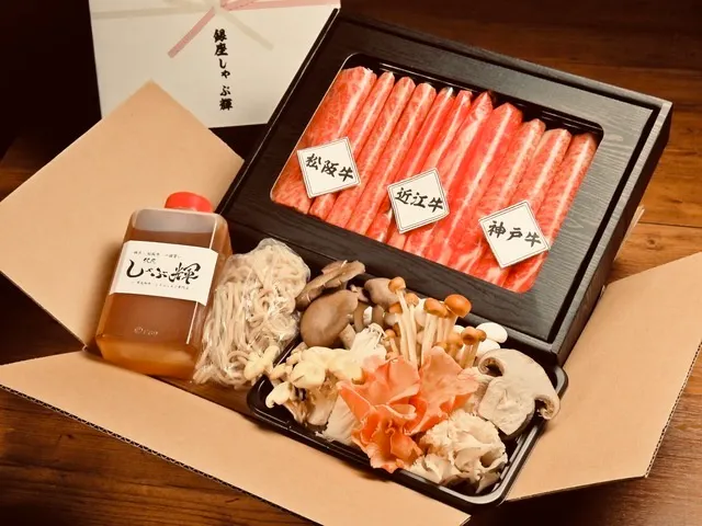 お肉と一緒にお楽しみいただき、ご家庭で葉物類をご用意いただけましたら、本格的に銀座しゃぶ輝の三大和牛食べ比べセットの内容でお楽しみいただけます。