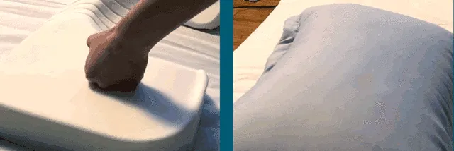 枕上部の柔らかさが沈む込むことでスムーズな寝返りをサポートします。
