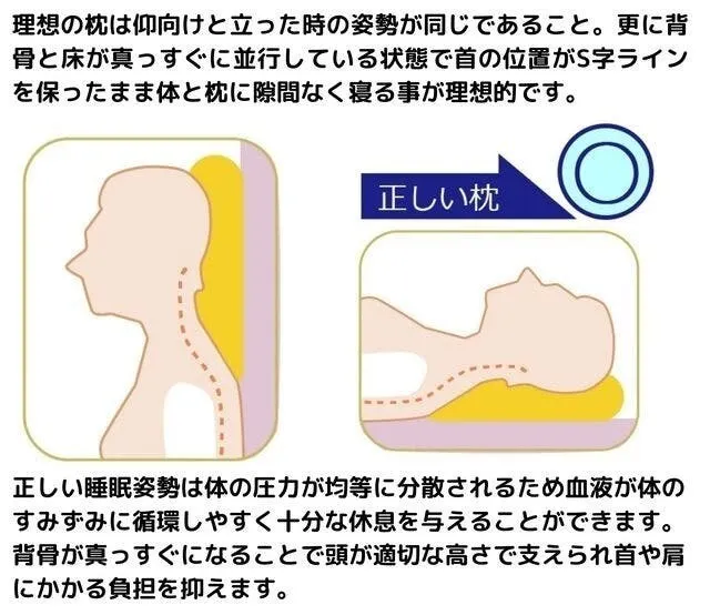 首や肩の痛みなど、枕を正しい位置に置いていないことで体に大きな負担が掛かっています。睡眠時は体や脳を休めるために枕を適切な位置に置くことはとても重要です。