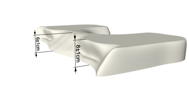 通常の枕は首や肩幅と枕の隙間や高さが生じやすいですが『Dr. good night』の低反発枕は通常の枕とは違い滑らかな傾斜角度を入れています。高さは枕と首、肩幅の隙間をなくすため設計しています。