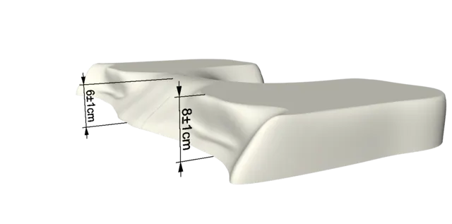 寝返りをスムーズにするため首位置の曲線を滑らかにしました。更に左右の高さを調整したことで睡眠姿勢を変える時に高低差が生じないため頭の位置と枕の間に隙間が生まれにくく頭の位置が一定のまま自然な寝返りを行なう事が出来ます。