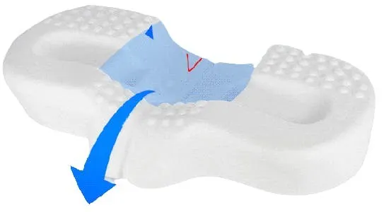 中央部を窪ませた事で頭の重さに合わせて徐々に沈み込み、エアシンクファイバーの弾力性によって適切な位置で頭を支えてくれます。