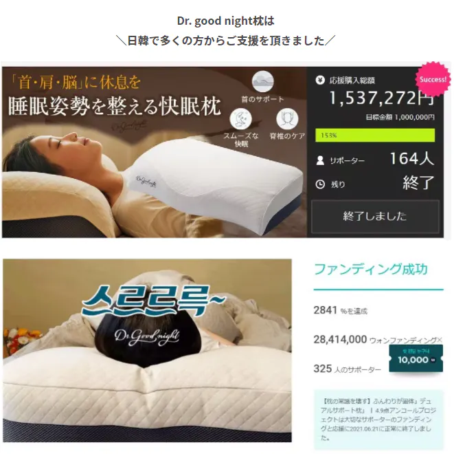 Dr good nightは日韓クラウドファンディングで沢山の人からご支援を頂いております!