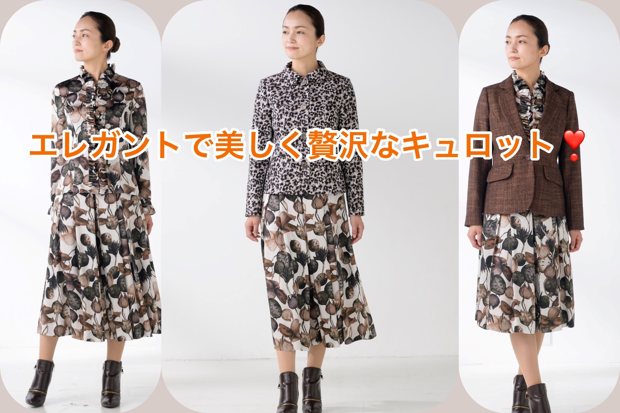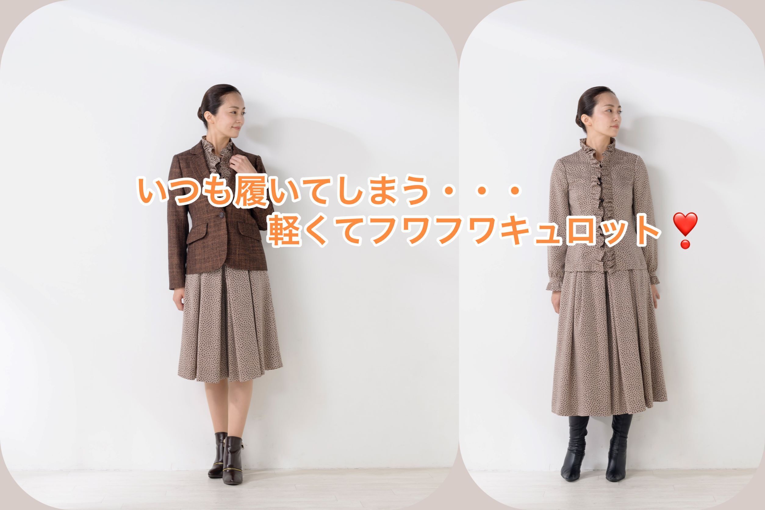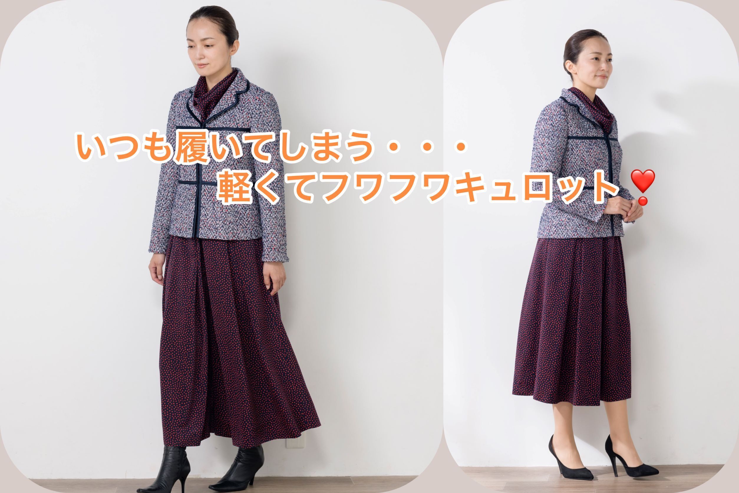 着ると楽しくなるキュロット!『もう、スカート・パンツは履かない!』・・・そんな気持ちになる、とても美しく、素敵なキュロットを8素材で3種類の丈で用意しました。