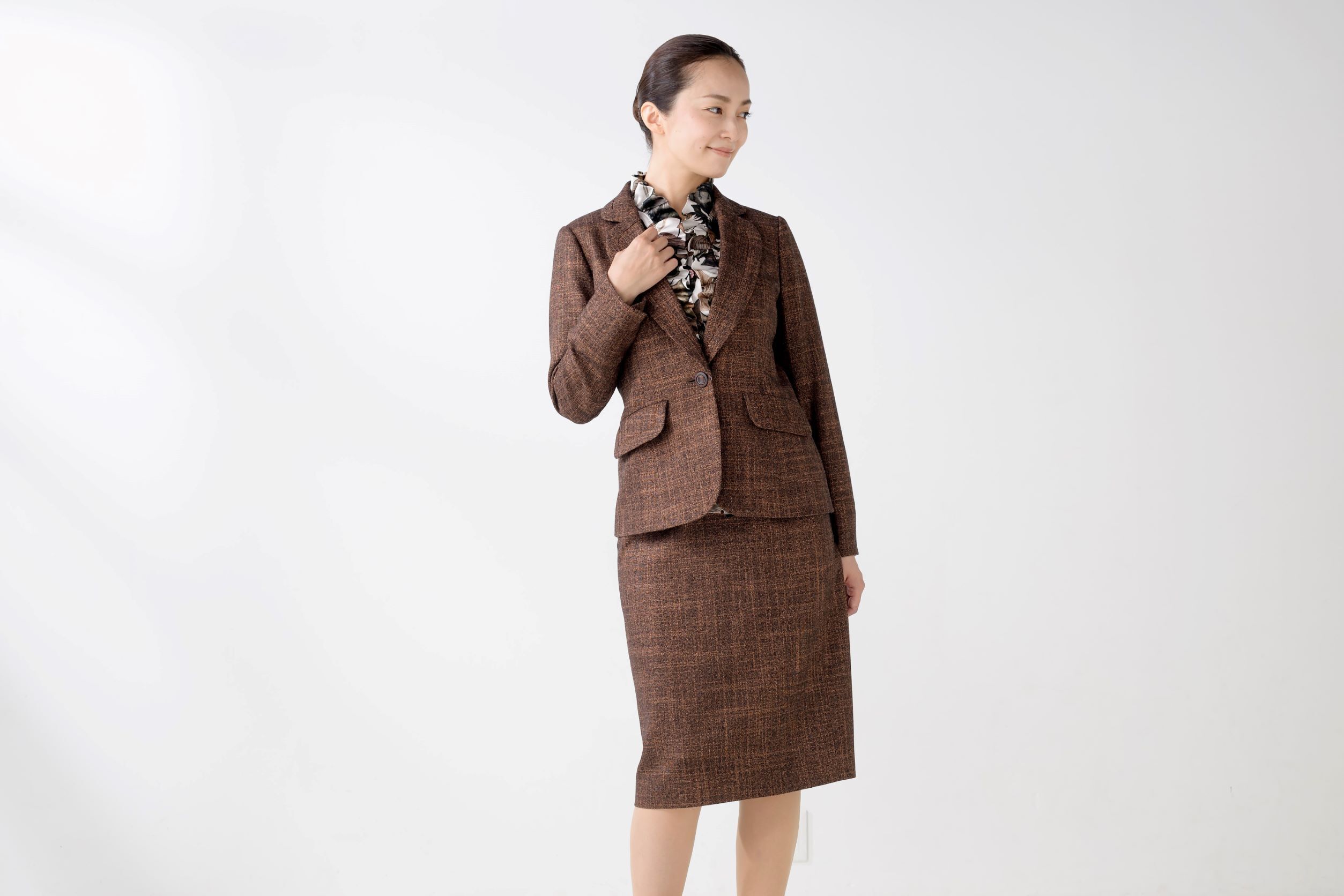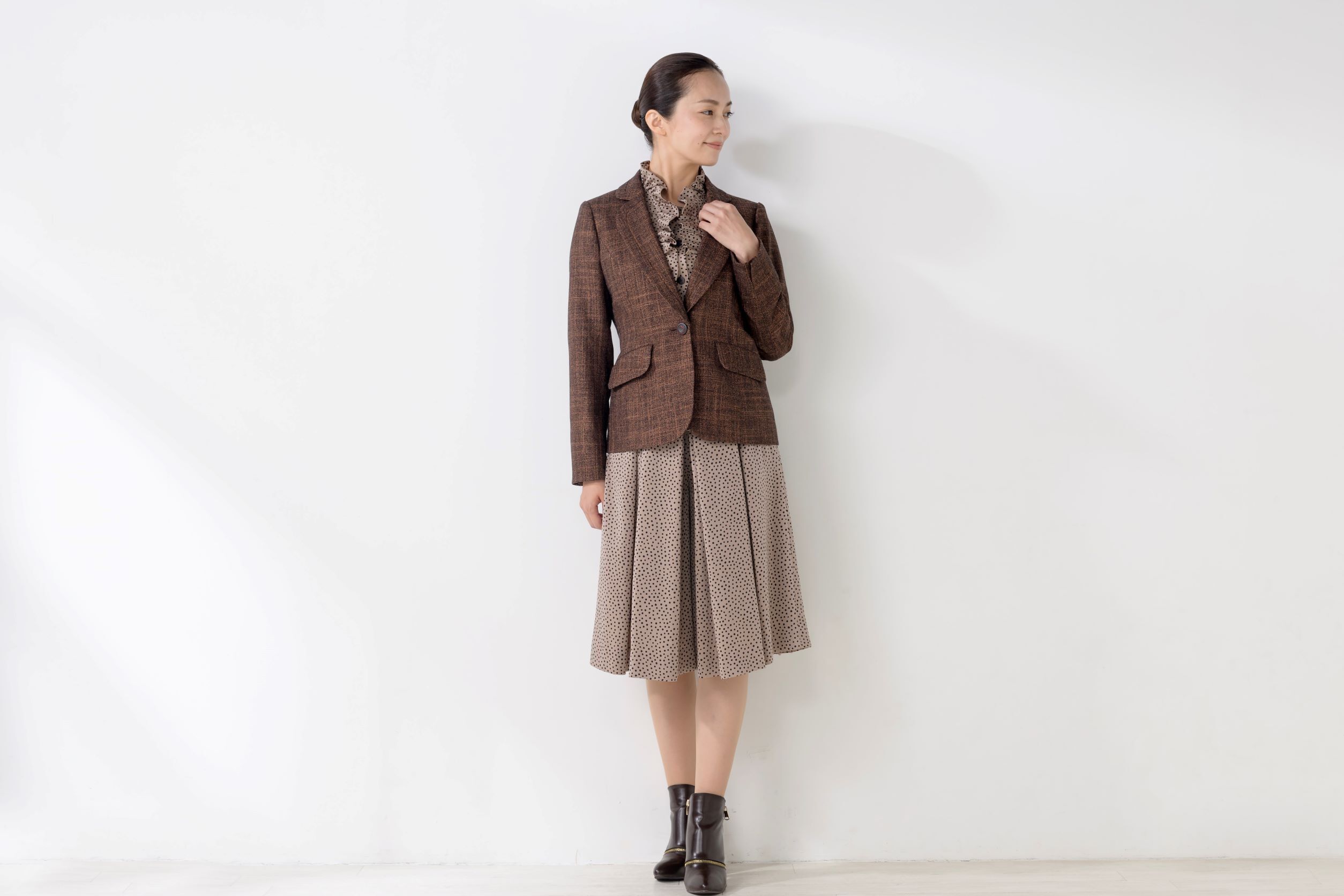 ★ダークブラウンの無地は、国産のハイカウントフラノです。肌触りが良く、控えめな光沢感と膨らみ感・落ち感が良く、フレアーシルエットが美しくでる高級感ある素材です。