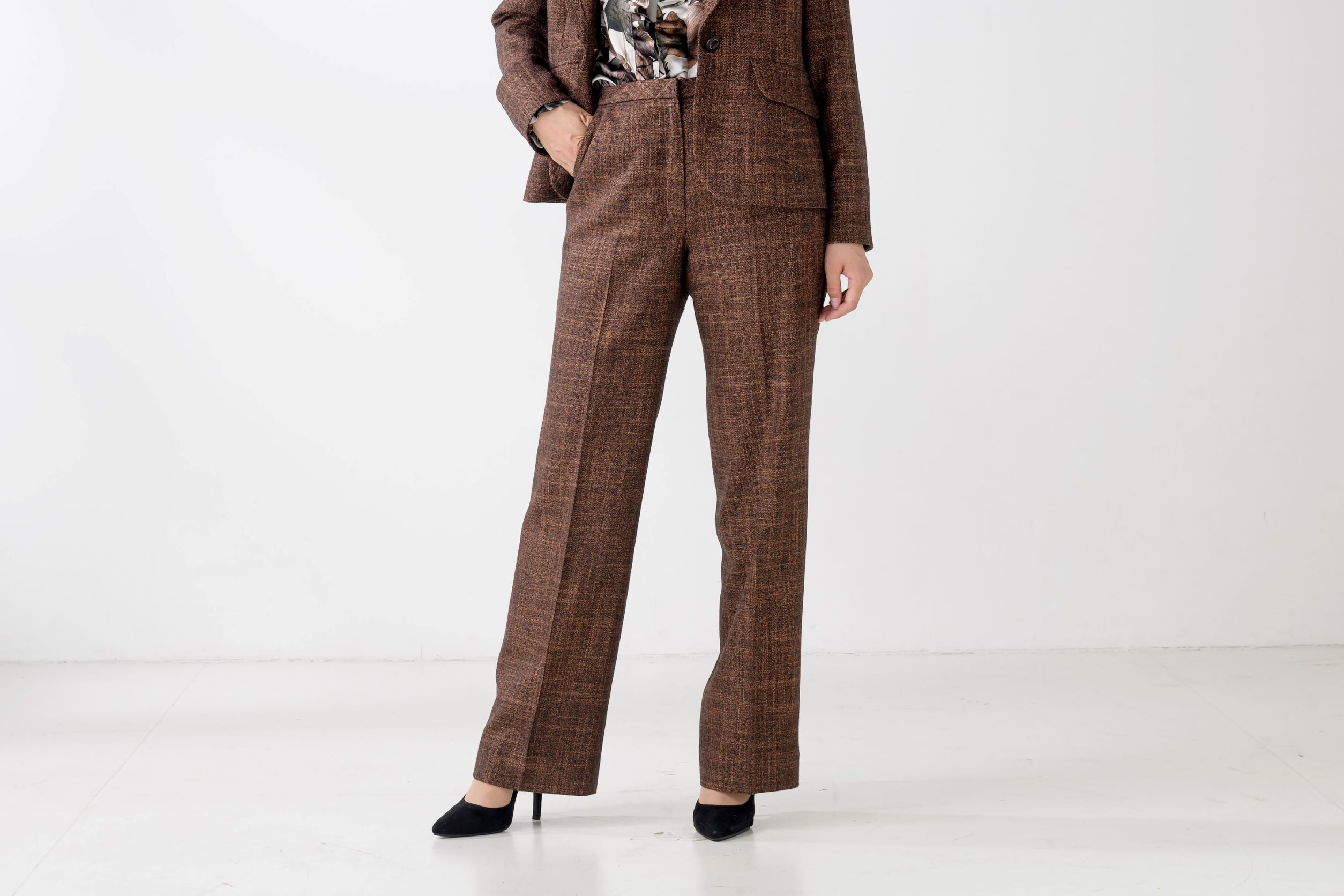 《イタリーのピアツェンツァのツイードです。バージンウール、シルク、カシミア混の非常に高級な素材です。 ストレートのパンツです。》