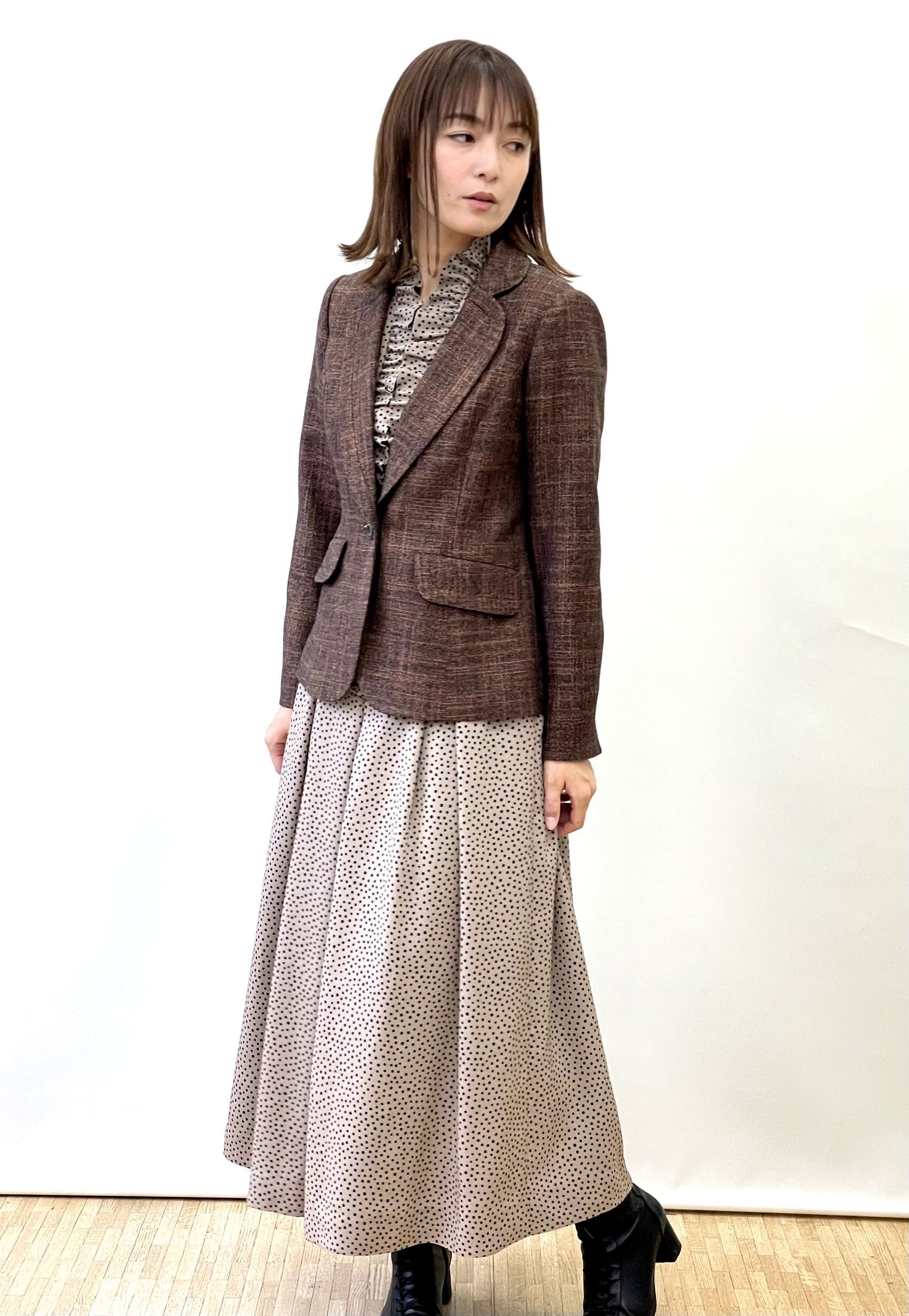 ★ピアツェンツァのツイードのジャケット、スカート、パンツとのセットアップで用意しています。