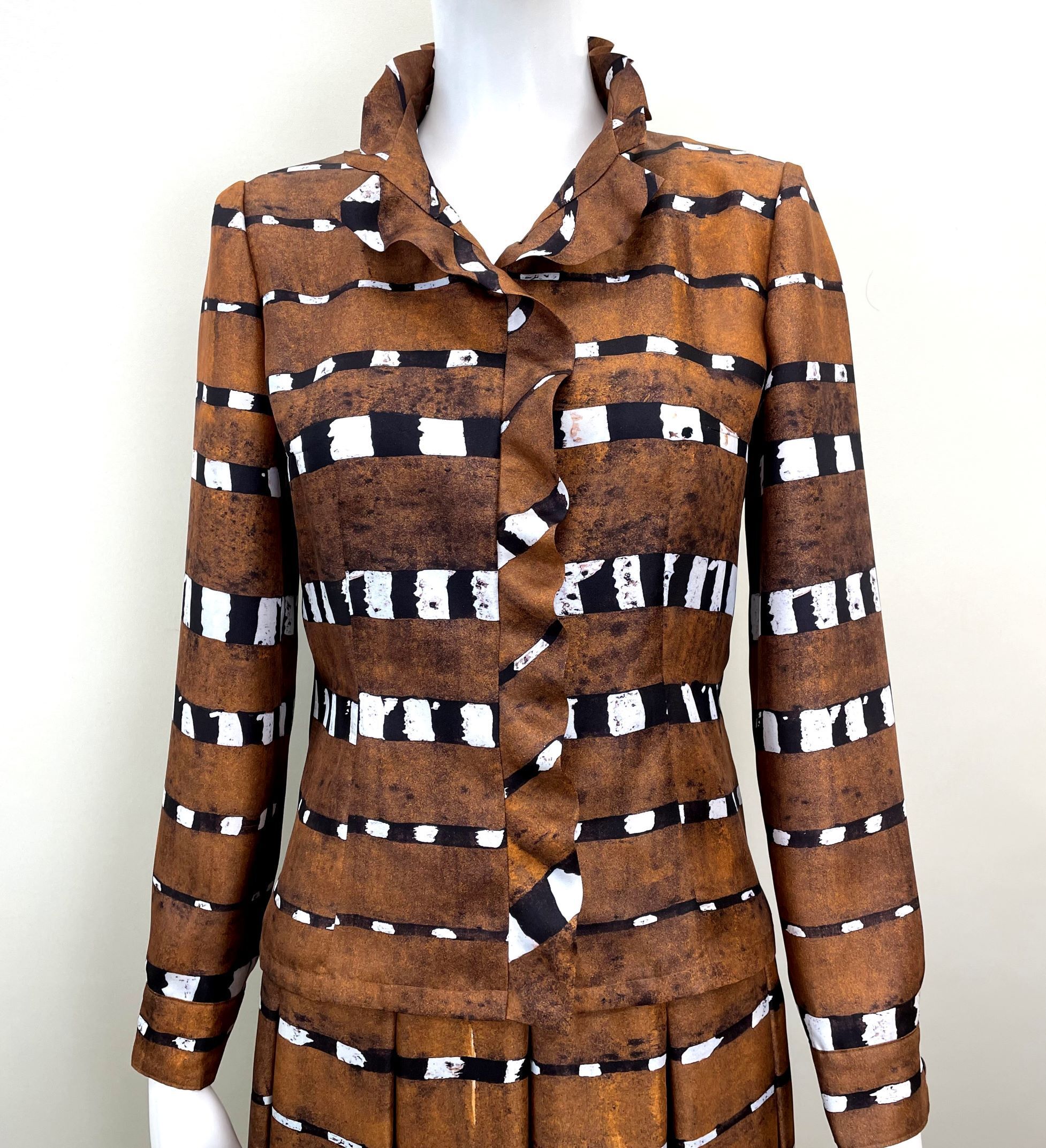 《イタリーのピアツェンツァのツイードです。バージンウール、シルク、カシミア混の非常に高級な素材です。 タイトスカートで、後ベンツ仕様になっています。》