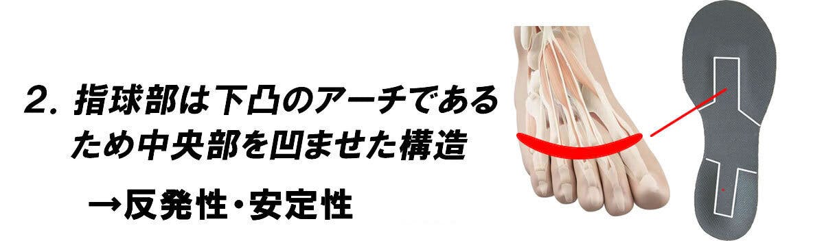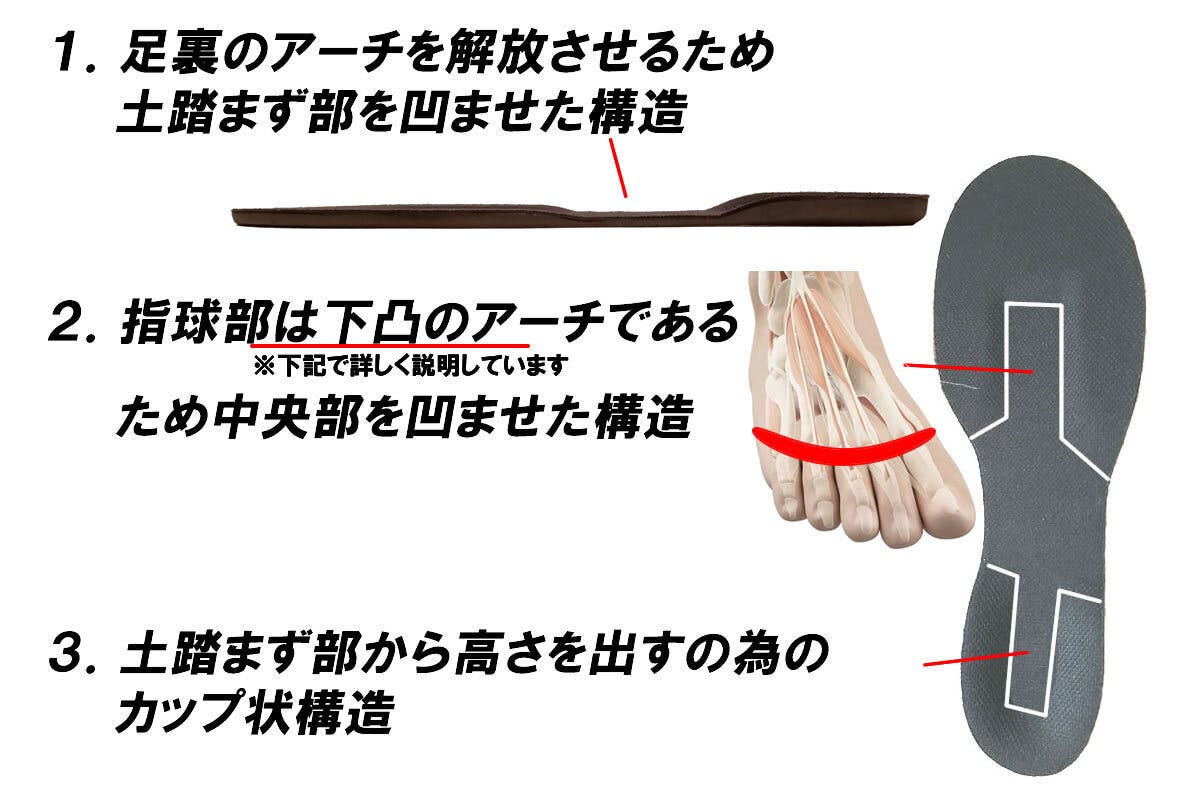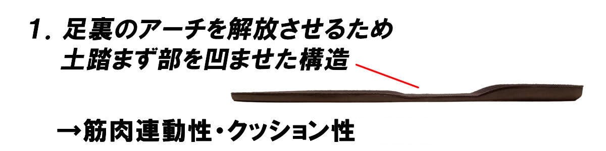 このインソールは土踏まず部を開放している為、足裏の筋肉に負荷がかかりやすいです。