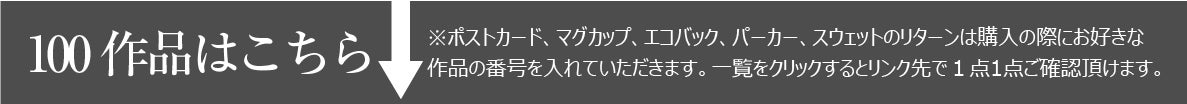 100作品の中からお好きな作品を1つ選び、スウェット・パーカーのデザインにして印刷します。3色(白、黒、グレー、緑)4サイズ(S,M,L,XL)からお選び出来ます。