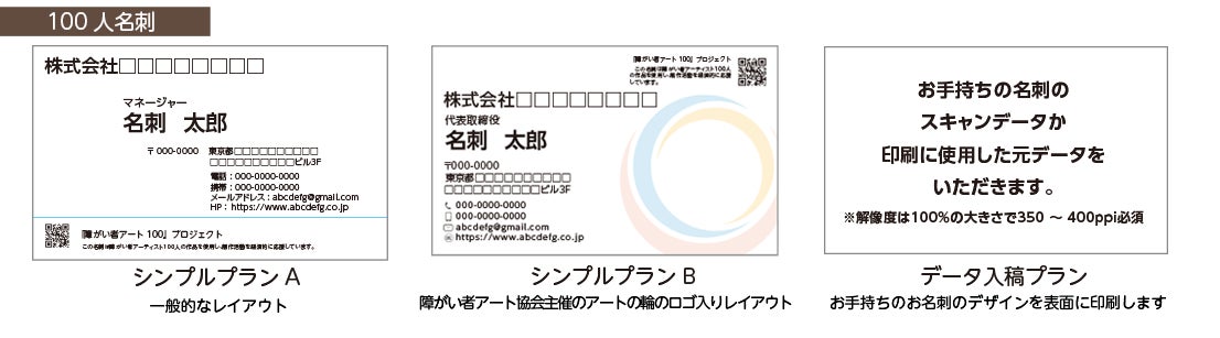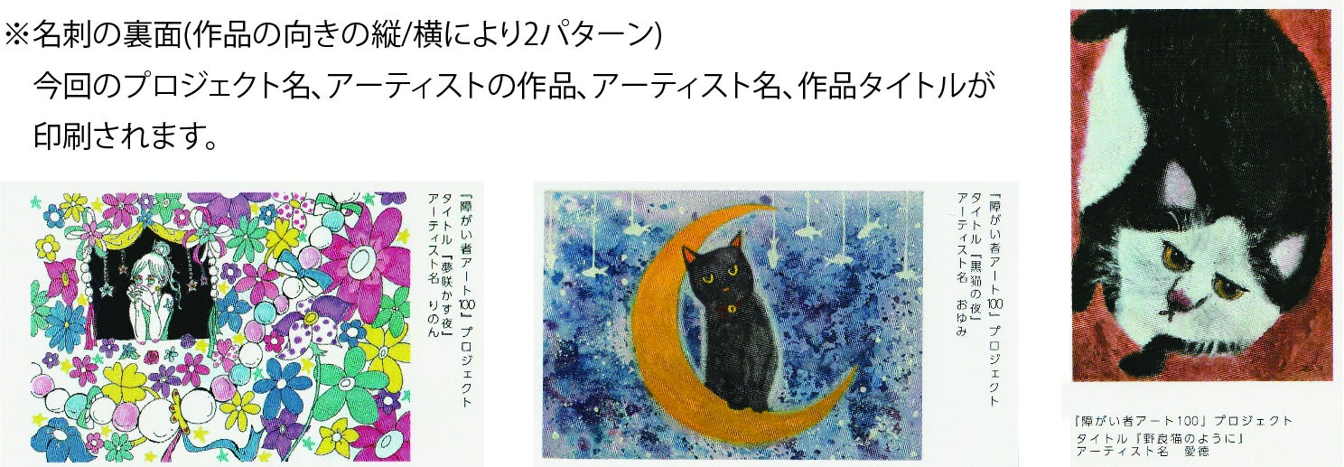 アート名刺を使うことで、名刺交換の場で印象の差をつけることや会話のきっかけとして話題を広げることもできます。また名刺は『障がい者』や『アート』に興味が薄い方の手にも渡りますので、みなさまが名刺を使ってくださることで、支援の輪がどんどん広がります。